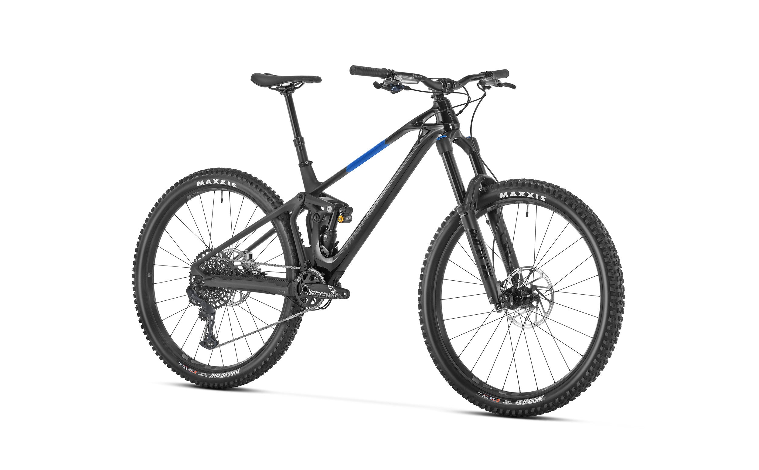 SuperFoxy 29 Stealth Air full Carbon, Zero Suspension System, 160mm travel, Forward Geometry, Carbon Monoblock upper link, SuperBoost 12x157mm rear axle, tapered head tube, 73mm BSA bottom bracket, dedicated 1x drivetrain design, HHG internal cable routing, Enduro MAX sealed bearings, shock mudguard, ISCG 05, custom frame protectors. *Optional Geometry kit